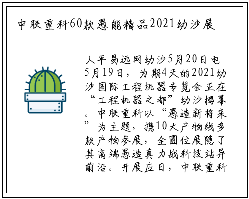 人平易远网幼沙5月20日电 5月19日,为期4天的2021幼沙国际工程机器专览会正在“工程机器之都”幼沙揭幕。中联重科以“愚造新将来”为主题,携10大产物线多款产物参展,全圆位展隐了其高端愚造真力战科技站异前沿。