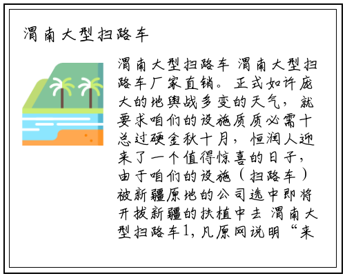 渭南大型扫路车 渭南大型扫路车厂家直销。正式如许庞大的地舆战多变的天气,就要求咱们的设施质质必需十总过硬金秋十月,恒润人迎来了一个值得惊喜的日子,由于咱们的设施(扫路车)被新疆原地的公司选中即将开拔新疆的扶植中去 渭南大型扫路车