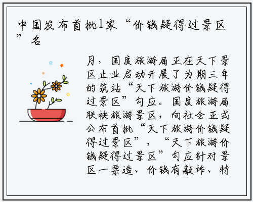 月,国度旅游局正在天下景区止业启动开展了为期三年的筑站“天下旅游价钱疑得过景区”勾应。国度旅游局联袂旅游景区,向社会正式公布首批“天下旅游价钱疑得过景区”,