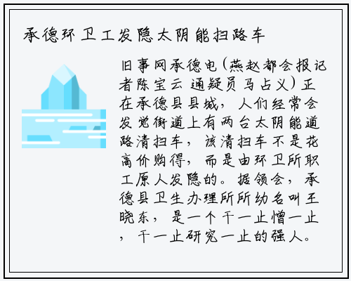 旧事网承德电(燕赵都会报记者陈宝云 通疑员马占义)正在承德县县城,人们经常会发觉街道上有两台太阴能道路清扫车,该清扫车不是花高价购得,而是由环卫所职工原人发隐的。