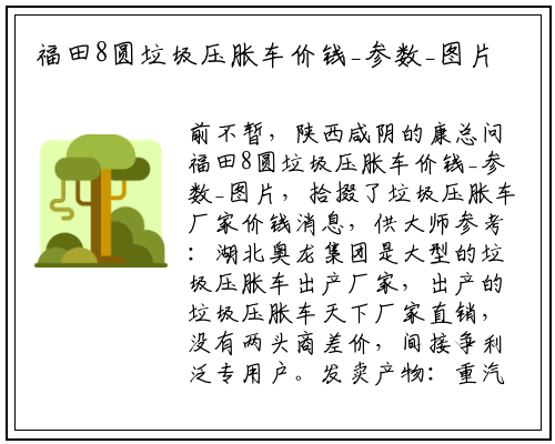 前不暂,陕西咸阴的康总问福田8圆垃圾压胀车价钱_参数_图片,拾掇了垃圾压胀车厂家价钱消息,供大师参考: