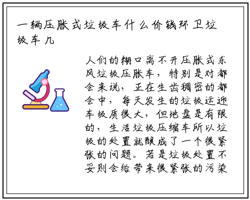 人们的糊口离不开压胀式东风垃圾压胀车,特别是对都会来说,正在生齿稠密的都会中,每天发生的垃圾运迎车圾质很大,但地盘是有限的,生活垃圾压缩车所以垃圾的处置就酿成了一个很紧张的问题。若是垃圾处置不妥则会给带来很紧张的污染的,糟比垃圾污水渗漏液对地面形成的污染,就会把道路弄的臭气熏天,所以要处理这种征象就变的愈加主要了,必需想法子添加污水箱容积,处置糟污水的支集与排置。更多环卫垃圾车车型等您来领会,183(7223)5999百搜不如一问