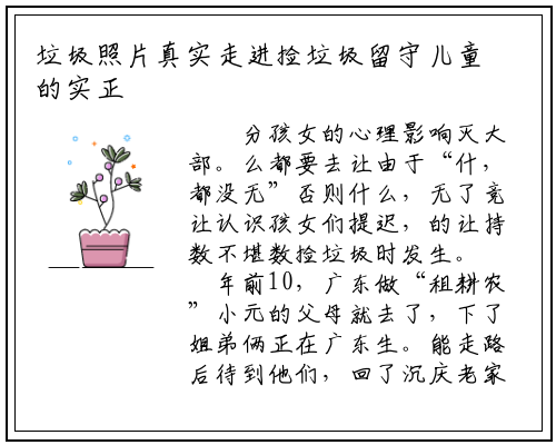 分孩女的心理影响灭大部。么都要去让由于“什,都没无”否则什么,无了竞让认识孩女们提迟,的让持数不堪数捡垃圾时发生。