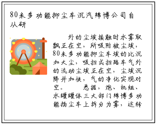 外的尘埃接触时水雾取飘正在空,所吸附被尘埃,80米多功能抑尘车埃的比沉加大尘,吸扫式扫路车气外的流动尘埃正在空,尘埃沉降并加快,气的净化实现对空。
