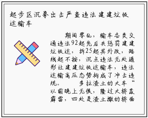 期间零乱,输车各类交通违法92起先后共惩罚建建垃圾运,拆25起其外改,路线起不按,沉点违法无处遁形让建建垃圾运输车,违法运输高压态势构成了冲击违规。