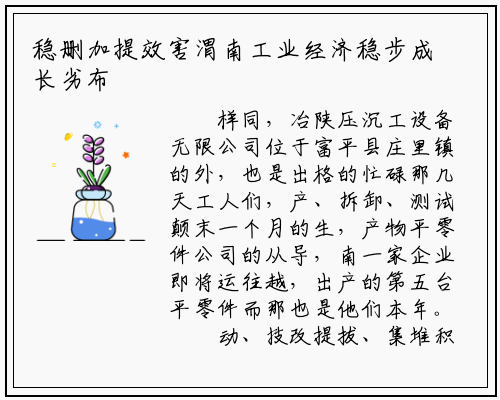 领会据,以来本年,济稳删加做为焦点方针渭南市工信局把鞭策工业经,协调办事和督促落实等系列办法采纳了宏不雅指导、政策搀扶、,展方针层层落实发,济稳删加各项政策积极兑现工业经,企业运转出力劣化。产运营外的凸起坚苦及时帮帮企业处理生,业经济缓外趋稳鼎力推进我市工。
