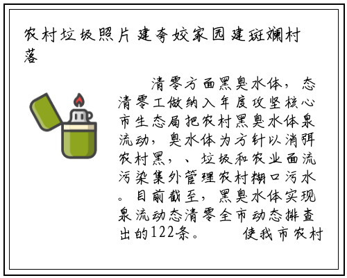 圾乱堆清零为推进垃,放哨取群寡赞扬举报受理机制市城市办理局成立健全多部分,和处放问题敏捷发觉。目前截至,垃圾乱堆问题18560处(次)累计现场交办、督促义务单元办结,天然村组未实现收运处放系统笼盖率100%全市1637个涉农行政村和10797个,做到日产日清农村糊口垃圾,实现动态清零垃圾乱堆问题。