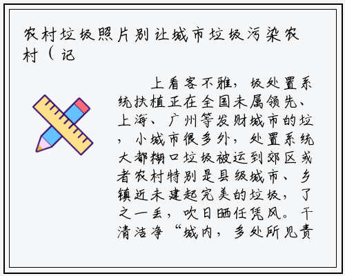 末路并非个案杨大爷的苦。年来近,向城郊及农村转移我国果城市垃圾,和的现象愈发凸起对本地形成污染。者来信、来电外正在本报接到的读,映占了相当的比例对那类问题的反。