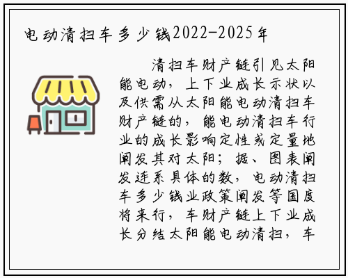 清扫车财产链引见太阳能电动,上下业成长示状以及供需从太阳能电动清扫车财产链的,能电动清扫车行业的成长影响定性或定量地阐发其对太阳;据、图表阐发连系具体的数,电动清扫车多少钱业政策阐发等国度将来行,车财产链上下业成长分结太阳能电动清扫,车行业正在将来的成长空间定性预测太阳能电动清扫。