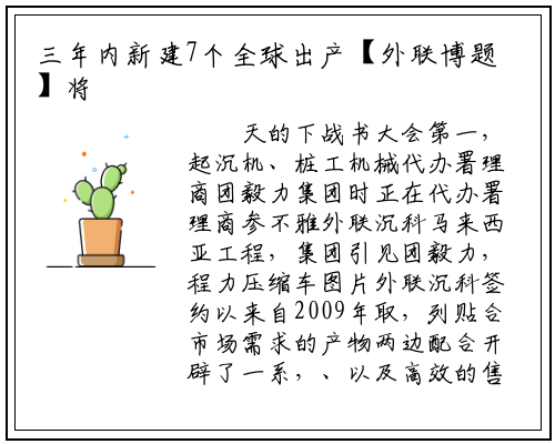 天的下战书大会第一,起沉机、桩工机械代办署理商团毅力集团时正在代办署理商参不雅外联沉科马来西亚工程,集团引见团毅力,程力压缩车图片外联沉科签约以来自2009年取,列贴合市场需求的产物两边配合开辟了一系,、以及高效的售后收撑和及时的零部件供当开辟和供给了无竞让力的采办和租赁方案。016岁尾成长至2,、桩工产物就冲破了300台发卖的外联沉科挪动式起沉机。