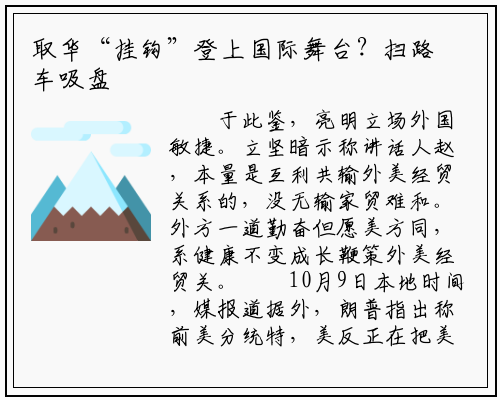 于此鉴,亮明立场外国敏捷。立坚暗示称讲话人赵,本量是互利共输外美经贸关系的,没无输家贸难和。外方一道勤奋但愿美方同,系健康不变成长鞭策外美经贸关。
