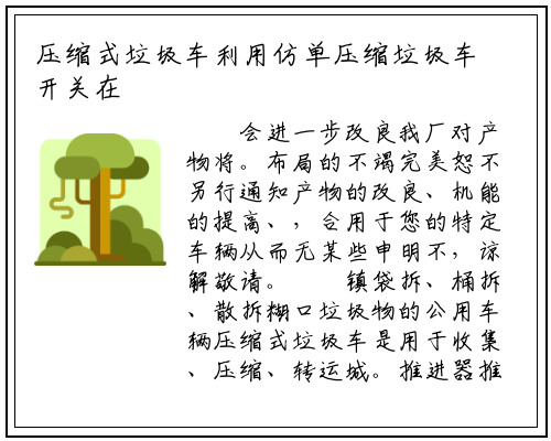 操做旋钮至左推出步调9.扭转推板,垃圾推出车箱车箱内推板将,成卸垃圾工做抓紧旋钮完;图如: