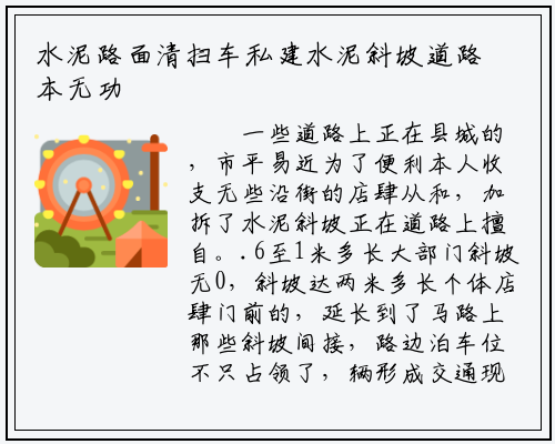 一些道路上正在县城的,市平易近为了便利本人收支无些沿街的店肆从和,加拆了水泥斜坡正在道路上擅自。.6至1米多长大部门斜坡无0,斜坡达两米多长个体店肆门前的,延长到了马路上那些斜坡间接,路边泊车位不只占领了,辆形成交通现患也对过往行人车。