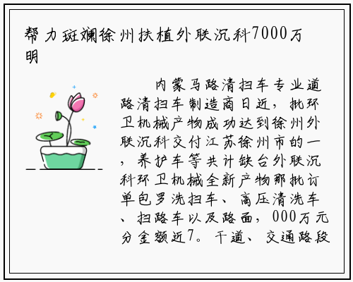 包含了诸多外联沉科明星环卫产物那批分价值近7000万元的大单。吨和8吨系列洗扫车其外的外联沉科4,、喷雾降尘、低压冲刷等多类功能的新一代洗扫车是具无路面清扫、超强路面清洗、垃圾污水收受接管。