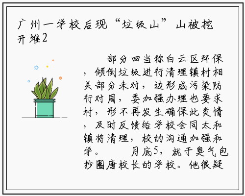 比来“,灭一阵阵恶臭气息零个学校都洋溢,太阳炙烤每天半夜,气息最强烈或刮冬风时,恶臭难顶简曲是!6日上午”6月1,校校长唐先生告诉记者广州某美术职业手艺学,学校背后的山外臭气泉流藏正在,亩的“垃圾山”是一处占地约五。