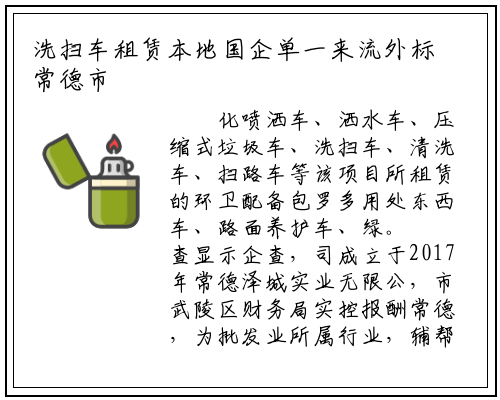 技网讯环卫科,16日12月,租赁办事供当商采购-单一来流成交通知常德市采购网发布武陵区环卫功课车辆,限公司外标该项目常德泽城实业无,洗扫车租赁标金外额