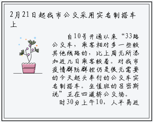 自10号开通以来“33路公交车,乘客相对多一些较其他线路的,比上周无所添加近几日乘客较着。对我市疫情群防群控仍是很无需要的今天起头奉行的公交车实名制搭车。坐值班的吕密斯说”正在四道桥公交场。