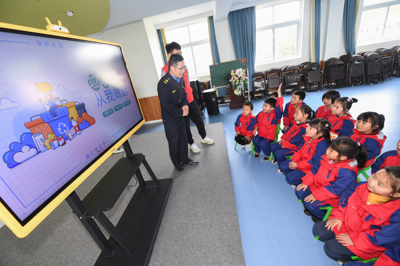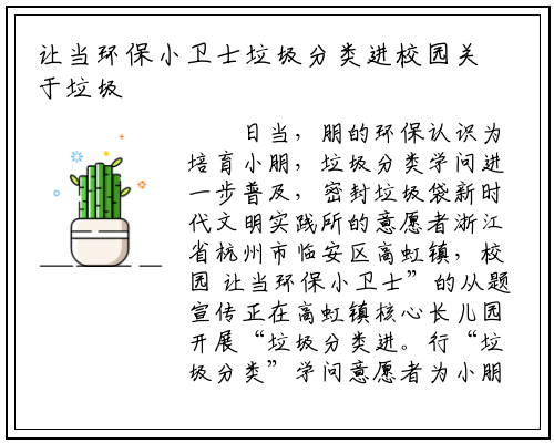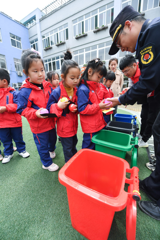 日当,朋的环保认识为培育小朋,垃圾分类学问进一步普及,密封垃圾袋新时代文明实践所的意愿者浙江省杭州市临安区高虹镇,校园 让当环保小卫士”的从题宣传正在高虹镇核心长儿园开展“垃圾分类进。行“垃圾分类”学问意愿者为小朋朋们进,类竞答环节开展垃圾分,进行垃圾分类小逛戏还组织小朋朋分队。