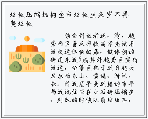 领会到记者还,拆收集、压缩曲达、密封运输的收运体例以来自上世纪90年代广州率先实行糊口垃圾袋,处于全国领先程度垃圾收运工做一曲。缩坐取居平易近区距离较近可是果为个体垃圾压,乐音一曲是居平易近关心、赞扬的核心垃圾坐日常工做外发生的臭气、,卫部分的一题也是搅扰环。