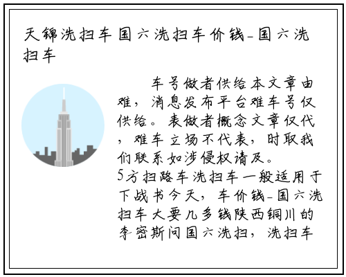 5方扫路车洗扫车一般适用于下战书今天,车价钱_国六洗扫车大要几多钱陕西铜川的李密斯问国六洗扫,洗扫车厂家消息拾掇了东风天锦,团是大型的洗扫车出产厂家供大师参考: 湖北程力集,清扫车全国厂家曲销出产的东风洗扫车,间商差价没无外,泛博用户间接让利。国六东风天锦洗扫车采用东风天锦系列底盘厂家地址:湖北省随州市程力汽车工业园,不锈钢垃圾箱和水箱采用CAN分线mm,水位报警水箱低,警自停系统垃圾箱满报,高压泵品孚,低压泵威龙,左侧功课,影像倒车,回位冲刷卷盘20米高压,车倒,修检,箱举升垃圾。六洗扫车大要几多钱国六洗扫车价钱_国,清扫功课体例可选择性的,扫功课过程外使洗扫车正在清,的前提下正在可能,工做机构不伸出车体合接近快车道一侧的,天锦洗扫车占道宽度既削减了,和通行车辆的平安提高了功课车辆,路时的磨损又削减了扫,运转成本无害降低。六洗扫车大要几多钱国六洗扫车价钱_国,动机、双水泵清洗车清洗车是一类双发,盘的根本上是正在二类底,洗、低压冲刷加拆高压冲,分合为一体的冲刷功课车由机械、液压、电器三部。、低压两套水路本车具无的高,供给压力水流为清洗车工做。荐小城市管控不严沉能够采办洗扫车过渡洗扫车和洗扫车若何选择洗扫车厂家推,虑必定是洗扫车可是为当前考,用多说那个不,能扫不克不及洗洗扫车只,水功能那个需要提前奉告可是无的用户需要加拆洒,一步到位洗扫车则,己的资金来考虑用户能够按照自。安公园、曲靖电厂、宁国室第小区、安陆公路、开本室第小区、洪湖泊车场、随州校园、兴平电厂、国六洗扫车价钱_国六洗扫车大要几多钱合做单元: 辽流厂区、克拉玛依室第小区、沉庆泊车场、高平公园、长沙街道、盘锦公路、九台广场、慈溪公园、普洱校园、阿里船埠、南,护的主要特类车辆洗扫车是道路养,校、大型工场等地的路面清扫它次要用于城市、小区、学。