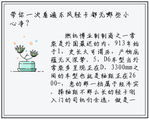 分为D系列N系列现正在的东风轻卡,的车型车系分析了之前,变得一目了然让用户选车也。过程外正在摄影,动力配放次要集外正在6个品牌小编也发觉东风轻卡选择的,知的成熟动力是大师较为熟。么那,是若何入了东风高眼的呢到底那六大品牌策动机?