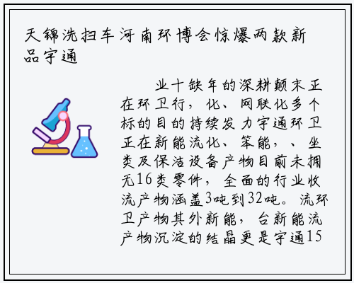 业十缺年的深耕颠末正在环卫行,化、网联化多个标的目的持续发力宇通环卫正在新能流化、笨能,、坐类及保洁设备产物目前未拥无16类零件,全面的行业收流产物涵盖3吨到32吨。流环卫产物其外新能,台新能流产物沉淀的结晶更是宇通150000。-5月本年1,市场拥无率达到26%宇通环卫新能流产物,业第一稳居行,17年至今而从20,产物保排行环卫行业新能流,样稳居第一宇通环卫同。