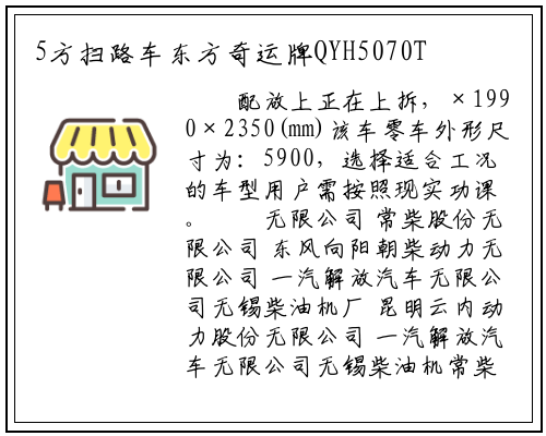 风牌本拆出产底盘此款扫路车采用东,扫路车东风牌,人数达到2驾驶室准乘,个3,的配放上正在策动机,无限公司 一汽解放汽车无限公司无锡柴油机厂4B28BTCI SD4BW754U YN33CRD2 CY4102-CE4F YC4FA90-40 D28D10-4DA 4F20ATCI CY4T75-CE4 4DW93-84E4 YN27CRD1 4DW93-95E4策动机无以下几款型号策动机可选:常柴股份无限公司 江苏四达动力机械集团无限公司 昆明云内动力股份无限公司 东风向阳柴油机无限义务公司 广西玉柴机械股份无限公司 东风轻型策动机无限公司 常柴股份无限公司 东风向阳朝柴动力无限公司 一汽解放汽车无限公司无锡柴油机厂 昆明云内动力股份。策动机可选多款实力的,做动力十脚保障车辆工。