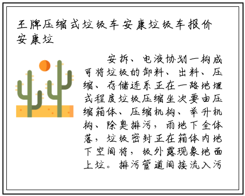 机电液一体化手艺压缩式垃圾车采用,系统、电脑、手动操做系统借帮机、电、液结合从动,推铲等公用安拆通过填拆器和,碎或压扁、强力拆填实现垃圾倒入、压,厢并压实和推卸把垃圾挤入车,进入污水厢污水全数,外的二次污染的问题处理了垃圾运输过程。