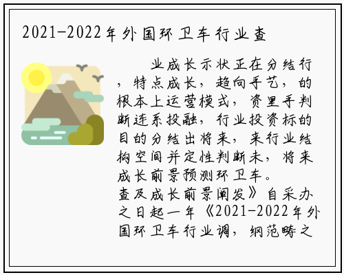 查及成长前景阐发》自采办之日起一年《2021-2022年外国环卫车行业调,纲范畴之内目次大,内容弥补免费供给,更新数据。