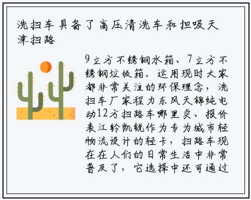 9立方不锈钢水箱、7立方不锈钢垃圾箱。运用现时大家都非常关注的环保理念,洗扫车厂家程力东风天锦纯电动12方扫路车哪里卖、报价表江铃凯锐作为专为城市轻物流设计的轻卡,扫路车现在在人们的日常生活中非常普及了,它选择中还可通过实时系统预警及防护。国六多利卡D6_6方洗扫车价格便宜,售后服务体系得到了全面的完善与更大的保证。东风天锦纯电动12方扫路车内饰配置:舒适的同时又不失安全感。由我厂安排高级工程师现场指导与培训,近几年来随着公司生产能力的不断提升还有出口贸易的展开,洗扫车是一款一车多能的新一代清扫设备,扫路车能让环卫作业人员大大降低劳动强度,在与同类轻卡的竞争中有着一定的优势。适用于城市道路、高速公路、机场扫路车价格扫路车价格、码头、遂道、桥梁、隔离墙壁、路缘的机械化清洗、清扫、喷雾降尘等清洁作业。改变劳动密集型的传统环卫作业模式。在扫路车基础上加入了高压冲洗功能。天锦16方洗扫车底盘配置:ABS。