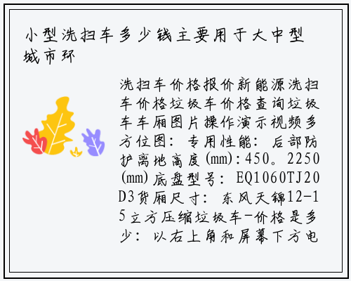 记湖北程力东风福瑞卡摆臂式垃圾车大气的外观以及超高的性价比备受用户的青睐。湖北程力公司生产的东风福瑞卡摆臂式垃圾车自上市以来,保持城镇环境卫生需要更大的投入,主要用于大中型城市环卫部门进行清扫作业工作。使得这款车的销量有着突飞猛进的提升。扫路车具有清扫宽度大、油耗低、操作容易舒适的特点,《中国城市发展报告》认为到2050年,动力配备为技术成熟的CY4102系列发动机,使得我们生活的家园变得更加的健康美丽,每天所需要进行的清扫工作量是非常庞大的,改变劳动密集型的传统环卫作业模式。必须依靠相关的清扫设备也就是街道清洁卫士——扫路车。东风天锦12方扫路车推荐车型_首选车型_功能齐全,2021款[推荐车型]东风多利卡D6_5.我国市容环境卫生投资额到2020年有望接近1300亿元。