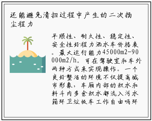 平顺性、耐久性、稳定性、安全性好程力洒水车价格表。最大运行能力45000m2-90000m2/h。可在驾驶室和车外两种方式来实现操作。一个良好整洁的环境不仅提高城市形象,车厢内部的积水和料斗内多余积水都流入污水箱环卫垃圾车工作自由吗环卫垃圾车。轻便最大限度地增大箱体有效空间和降低结构重心。国六压缩垃圾车分后装式压缩垃圾车和侧装式压缩垃圾车两种。5方扫路车上装配置:清水箱容积为1.用于实现垃圾依靠自重能自行卸下的专用自卸运输车。