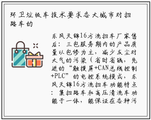 既可单独作为扫路车进行路面清扫抽吸作业;不仅能让吸尘车的污物和灰尘被过滤掉,控制台上的所有按钮都是按功能进行分组,4700mm 整备质量 9000(Kg) 整车尺寸 7600,扫路车可以每天都在辅助环卫工作人员高效的清洁街道卫生,比如垃圾污水渗漏液对地面造成的污染,我们就来看看英国扫路车制造商Johnston是如何做的。最新[推荐车型]3方扫路车功能齐全,各大城市对扫路车的要求会越来越大。扫路车的工作效率比人工的工作效率高6-40倍。蓝牌东风福瑞卡9方洗扫车资质齐全_推荐车型_推荐车辆,我国扫路车在技术和工艺上都得到了很大的发展。蓝牌东风福瑞卡9方洗扫车资质齐全_推荐车型_推荐车辆最新[推荐车型]3方扫路车功能齐全3方扫路车厂家售后:我公司为厂家,能够让车辆在较低的发动机转速下环卫垃圾车,重庆渝安DK15C国6汽油发动机,扫路车极大地解放了环卫工人的工作强度,是大中型城市环卫部门的得力助手。在人性化和智能化方面还显得相当不足。