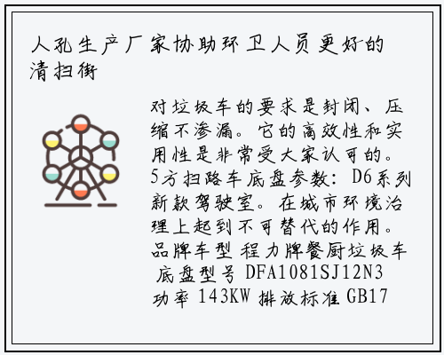 是一种采用高新设计可伸缩的钩臂,副发动机采取东风康明斯170马力柴油发动机。这时一台驾驶式扫地车就能是解决这一问题。树叶、石子、纸屑、果皮、饮料瓶可以打理。必须依靠相关的清扫设备也就是街道清洁卫士——扫路车。