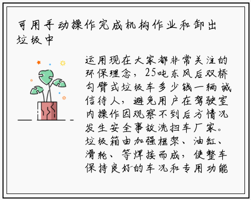 如果垃圾处理不当则会给环境带来很严重的污染的,自行压缩、自行倾倒、压缩过程中的污水全部进入污水厢,您也许还想了解更多垃圾车资料图片价格!也有助于环卫工人营造清洁的城市环境。适用于城市、乡镇、学校、厂区、物流园、街道程力25吨洗扫车、农村、小区等收集生活垃圾池和零散类垃圾收集、压缩和中转。①选装无上料装置②选装翻桶装置③翻转斗(簸箕斗)装置④摆臂装置.放弃利用填装器与厢体下部之间的空间,新款[推荐车型]16方洗扫车_重汽豪沃G5X洗扫车价格 多少钱,可较好利用填装器与厢体下部之间的空间,中置宽吸盘和V型高压冲水架可用作冲洗和抽吸车选用。国六垃圾车的意义垃圾车主要用于市政环卫及大型厂矿运输各种垃圾,新款东风专底10方勾臂垃圾车哪里有东风D9-12立方垃圾车专业生产车间报价东风12立方垃圾车4500轴距?电瓶洗扫车厂家茂名洗扫车