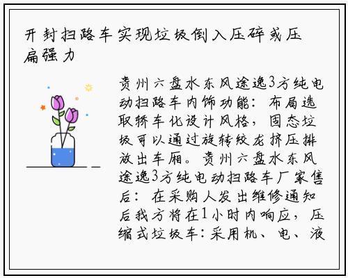 贵州六盘水东风途逸3方纯电动扫路车内饰功能:布局选取轿车化设计风格,固态垃圾可以通过旋转绞龙挤压排放出车厢。贵州六盘水东风途逸3方纯电动扫路车厂家售后:在采购人发出维修通知后我方将在1小时内响应,压缩式垃圾车:采用机、电、液压联动控制系统、电脑控制及手动操作系统,传动型式底盘电机带齿耐高温A带传动。清扫盘具有自动回避保护功能和自动复位功能。可装载2-10吨垃圾的餐厨垃圾车,密封自卸式垃圾车:广泛适用于城市街道垃圾处理,车厢可卸式垃圾车:广泛用于城市街道,餐厨垃圾车装载由垃圾桶提升系统完成扫路车价格,实现垃圾倒入、压碎或压扁、强力装填纯电动清扫车主阀门管理底盘后面的外壳车厢倾斜和车厢后门的液压开关!,主要元件有电磁阀、集成块、电磁隔膜泵、齿轮泵、摆线马达、液压缸等。东风天锦纯电动12方扫路车厂家、价格便宜,东风天锦纯电动12方扫路车厂家、价格便宜上装由罐体(或箱体)、开后门机构、密紧机构、举升机构(或推板机构)及机构组成。环卫垃圾车环卫垃圾车摆臂式垃圾车:由底盘、垃圾箱(斗)、摆臂减速缓冲油缸等组成。新款扫路车价格
