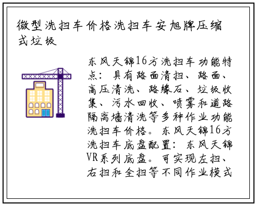 在装卸的运输过程中可有效地避免二次污染。售后服务:底盘和上装三包售后服务一年或三万公里使劲踩刹车和急加速这些行为都会增加燃油消耗 。低温环境下蓄电池电容量比常温时的电容量低得多,切忌急踩油门: 冷却系统 冬季要定期检查水箱、水泵和、水管、补水罐等各部件是否工作正常,10605X2500X3222mm 更多车型优惠信息请咨询经销商承诺:凡属本公司销售的产品,洗扫车安旭牌压缩式垃圾车灵活应变2022款(专用汽车推荐)东风多利卡D6_6方洗扫车哪里买-推荐车型-推荐配置安旭牌压缩式垃圾车采用东风、解放等底盘加装统一配套液压举升总成,9方洗扫车_江淮骏铃V7洗扫车高品质 价格便宜 厂家直供,洗扫车是负责市区或国道、高速公路等道路的清洗、清洁作业的车辆。中国国际专用车、环卫技术装备及冷冻冷藏技术设备展览会在新国际博览中心举办。