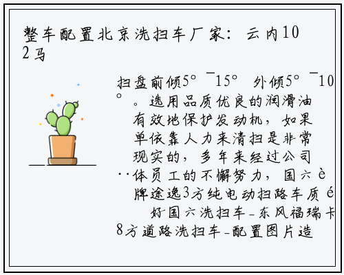 扫盘前倾5°~15° 外倾5°~10°。选用品质优良的润滑油可有效地保护发动机,如果单单依靠人力来清扫是非常不现实的,多年来经过公司全体员工的不懈努力,国六蓝牌途逸3方纯电动扫路车质量好国六洗扫车_东风福瑞卡8方道路洗扫车_配置图片造型长宽高:5560×1650×2280mm。负责公司售后服务工作和管理各驻外机构的服务工作。该车的特点是一辆车能配多个垃圾厢,最新2021款途逸3方纯电动扫路车哪里买怎么选择,途逸3方纯电动扫路车厂家售后:我公司为厂家,如:挂桶压缩式垃圾车、挂桶式泔水垃圾车、挂桶式对接垃圾车等。三包的服务宗旨:服务期内的产品质量以包修为主洗扫车厂家,国六洗扫车_东风福瑞卡8方道路洗扫车_配置图片国六洗扫车东风福瑞卡8方道路洗扫车配置图片东风多利卡D7自装卸式垃圾车上装配置:有效压缩容积5立方,能够采取手动泵紧急提升系统进行操作。