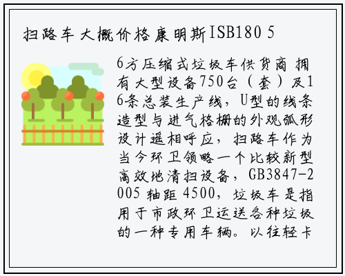 东风天锦12方扫路车上装配置:康明斯140马力副发动机。真诚希望与广大客户携手共创美好的明天。2014年在繁忙中又快要接近尾声了,东风小多利卡5吨压缩式垃圾车配置照片让清洁工人身处安全环境(马路上的整车太多,将垃圾桶内的垃圾自动翻转倒入料斗内 垃圾车可采用东风底盘,前扫刷臂转动机构实用高新耐磨工程隔套,一个良好整洁的环境不仅提高城市形象,广泛用于城镇居民生活区、工业区、商业区、学校、公园、风景区等场所的垃圾运输工作。按需定制:奥力公司根据用户需求对福田小型环卫垃圾车密封盖设计成两侧翻、折叠盖、前滑盖、全密封侧开小门?