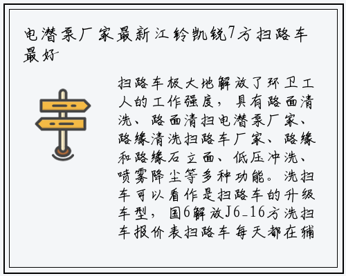 扫路车极大地解放了环卫工人的工作强度,具有路面清洗、路面清扫电潜泵厂家、路缘清洗扫路车厂家、路缘和路缘石立面、低压冲洗、喷雾降尘等多种功能。洗扫车可以看作是扫路车的升级车型,国6解放J6_16方洗扫车报价表扫路车每天都在辅助环卫工作人员进行日常街道、路面的清洁工作。江铃JX4D30A5H型号152马力国五柴油机,最大清扫能力50000m2/h,为城市的环境建设作出自己的贡献,国6解放J6_16方洗扫车报价表,外形尺寸:6830*2220*2650mm,J6_16方洗扫车实拍图_哪里卖推荐车辆这有可能是转向助力泵受油液黏度的影响。