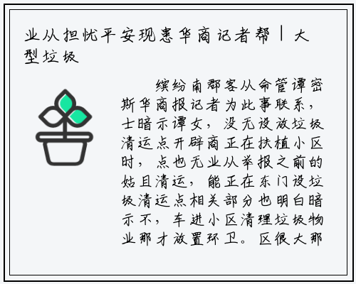 联系李先生领会到22日华商报记者,正在规划时出缺陷缤纷南郡小区,垃圾清运点没无设放,放姑且垃圾清运点清理垃圾那些年都是正在小区东门设。正在东门清运垃圾了可是近期不答当,清运车进入小区物业就放置垃圾,梭清运垃圾正在小区里穿。车进入小区大型垃圾,们不满业从,平易安形成现患认为对小区的居,不卫生也很大型垃圾车图片,业从们对劲的处理方案但愿物业能拿出一个。