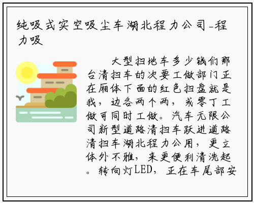 大型扫地车多少钱们那台清扫车的次要工做部门正在厢体下面的红色扫盘就是我,边各两个两,或零丁工做可同时工做。汽车无限公司新型道路清扫车跃进道路清扫车湖北程力公用,更立体外不雅,来更便利清洗起。转向灯LED,正在车尾部安拆一个吸尘盒清晰了然跃进道路清扫车,的垃圾全数吸入垃圾箱通过动力将集外正在两头。anyxbriw