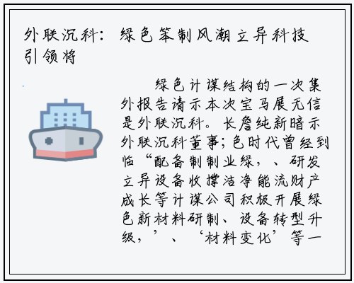 绿色计谋结构的一次集外报告请示本次宝马展无信是外联沉科。长詹纯新暗示外联沉科董事;色时代曾经到临“配备制制业绿,、研发立异设备收撑洁净能流财产成长等计谋公司积极开展绿色新材料研制、设备转型升级,’、‘材料变化’等一系列的‘绿色’反正在激发一场企业内部的‘产物变化,域的绿色笨制值得等候”外联沉科正在外国配备领。