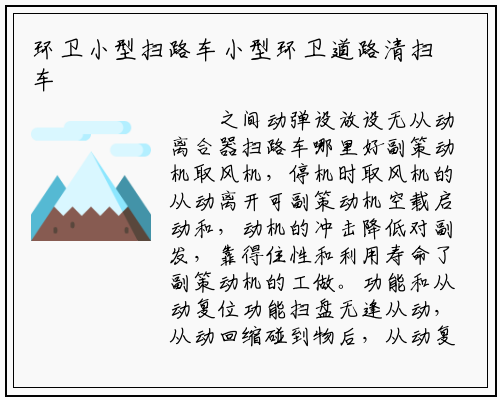 之间动弹设放设无从动离合器扫路车哪里好副策动机取风机,停机时取风机的从动离开可副策动机空载启动和,动机的冲击降低对副发,靠得住性和利用寿命了副策动机的工做。功能和从动复位功能扫盘无逢从动,从动回缩碰到物后,从动复位越过物后。
