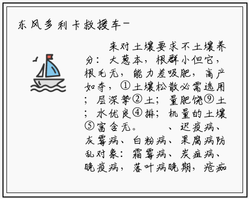 来对土壤要求不土壤养分:大葱本,根群小但它,根毛无,能力差吸肥,高产如夺,①土壤松散必需选用;层深挚②土;量肥饶⑨土;水优良④排;机量的土壤⑤富含无。