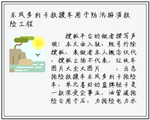 、当急抢险救援车东风多利卡抢险车,单元喜好的蓝牌轻卡是一款深受企事业。油管道抢险合用于石,力抢险电力水,力抢险燃气热,网抢险市政管,水抢险防汛排,路抢险高速公,信抢险当急通,等行业抢险救援消防救援抢险,显:该车辆可挂蓝牌此款车型劣势很是明东风多利卡救援车,通顺无阻市区道路;修的矫捷性、敏捷性极大的便利了抢险抢。按照客户行业需求定制车辆厢体内部构制可,抢险救援配备可配备各类,照明车载,机组发电,动力坐液压,等公用设备消防破拆。