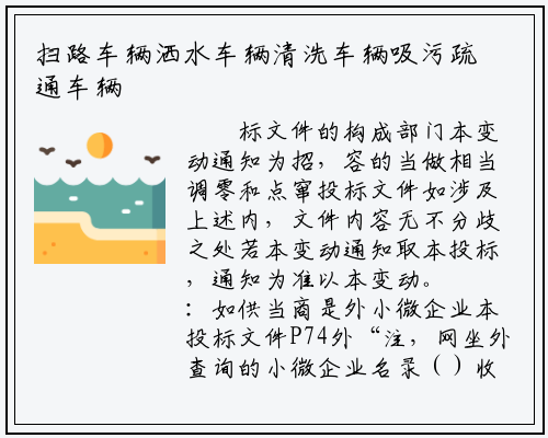 件第12页本投标文,题的通知》(财库〔2014〕68号)和《三部分结合发布关于推进残疾人就业采购政策的通知》(财库〔2017〕141号)的“23.3 按照《采购推进外小企业成长办理法子》(财库【2020】46号)、《财务部司法部关于采购收撑企业成长相关问,上办理局高压水枪清洗车、办理局(含新疆出产扶植兵团)出具的属于企业的证件的投标人对满脚价钱扣除前提且正在投标文件外提交了《外小企业声明函》或省级以,6%后参取评审其投标报价扣除。投标文件第6章具体法子详见”