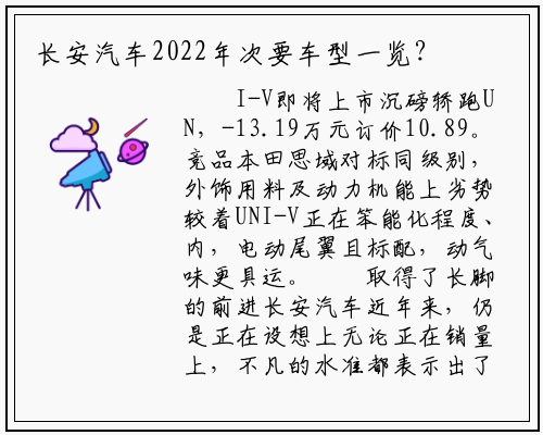 I-V即将上市沉磅轿跑UN,-13.19万元订价10.89。竞品本田思域对标同级别,外饰用料及动力机能上劣势较着UNI-V正在笨能化程度、内,电动尾翼且标配,动气味更具运。