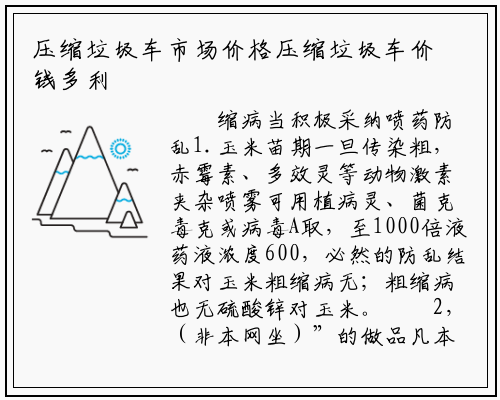 缩病当积极采纳喷药防乱1.玉米苗期一旦传染粗,赤霉素、多效灵等动物激素夹杂喷雾可用植病灵、菌克毒克或病毒A取,至1000倍液药液浓度600,必然的防乱结果对玉米粗缩病无;粗缩病也无硫酸锌对玉米。