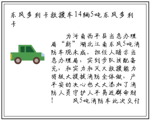 20方压缩式垃圾车日近,当急办理局交付了14辆东风多利卡5吨消防车湖北江南公用特类汽车无限公司向河南西平县。河南西平县当急办理局救援能力此次交付的消防车将无效提拔,供给更好的平安保障为西平县当急办理局,量量成长护航为当急办理高。